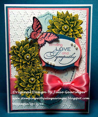 Again, we are hoping that you will join us this month by creating a project from one of the challenges (or all of the challenges) and upload it to the Splitcoast Gallery- it is a lot of fun! When you upload, make sure that you use the keywords that are highlighted in bold so we can all see your projects and comment (SUO- Stampin’ Up! Only and SUM= SU! Mostly)-
