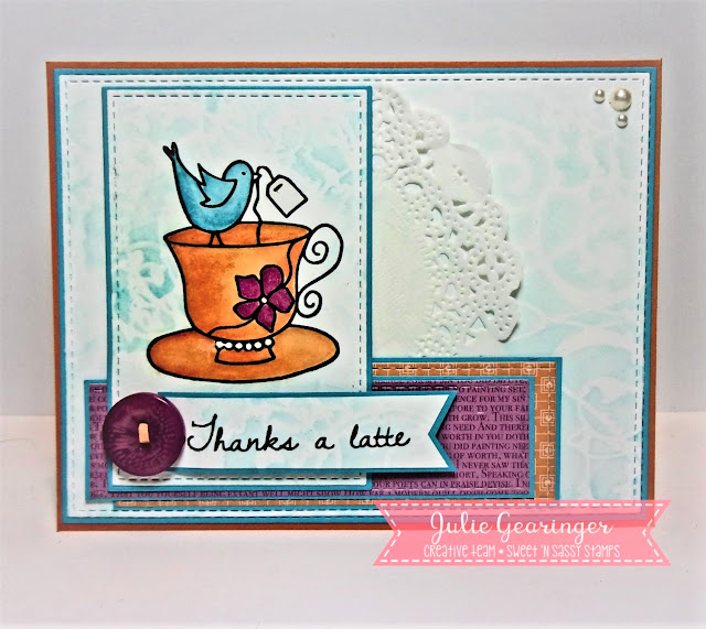 the cup with the bird image and the “Thanks a Latte” sentiment from Special