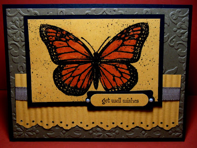 Every so often I like to pull out one of my retired sets- in fact, the majority of my stamp collection from the past 12 years is now retired (I cannot part with them yet) and I thought that one of the butterflies from Wonderful Wings would be perfect for the theme portion of the challenge. I just love the images in this set, in fact, I think all of God's creations are so exquisite and this butterfly is no exception :-)