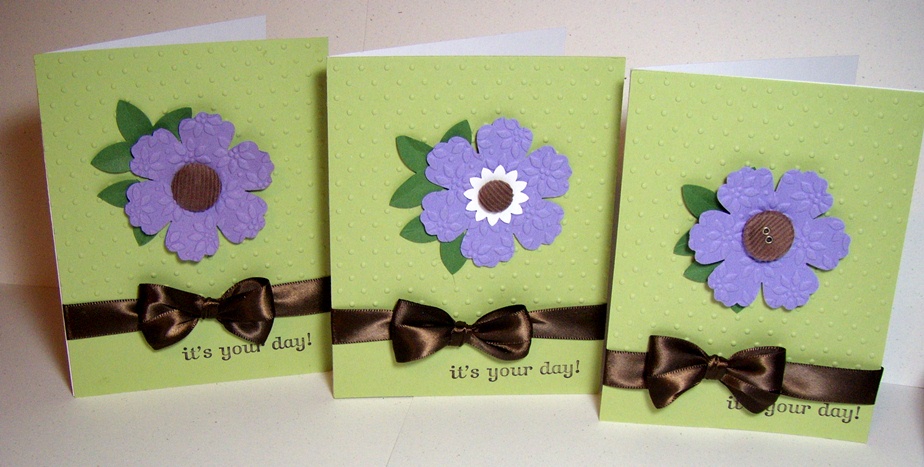 Accessories:  Big Shot™, Textured Impressions™ Embossing Folders- Perfect Polka Dots, Petals-A-Plenty, Punches- Owl Builder, Cupcake Builder, Scallop Circle, Blossom, 5-Petal Flower, Corduroy Buttons (retired), Rhinestone, Heat Gun, Stampin' Emboss Basic Black Embossing Powder, Sponge Daubers, Satin Pearls, 5/8" Basic Black Satin Ribbon, additional Satin Ribbon  from my stash